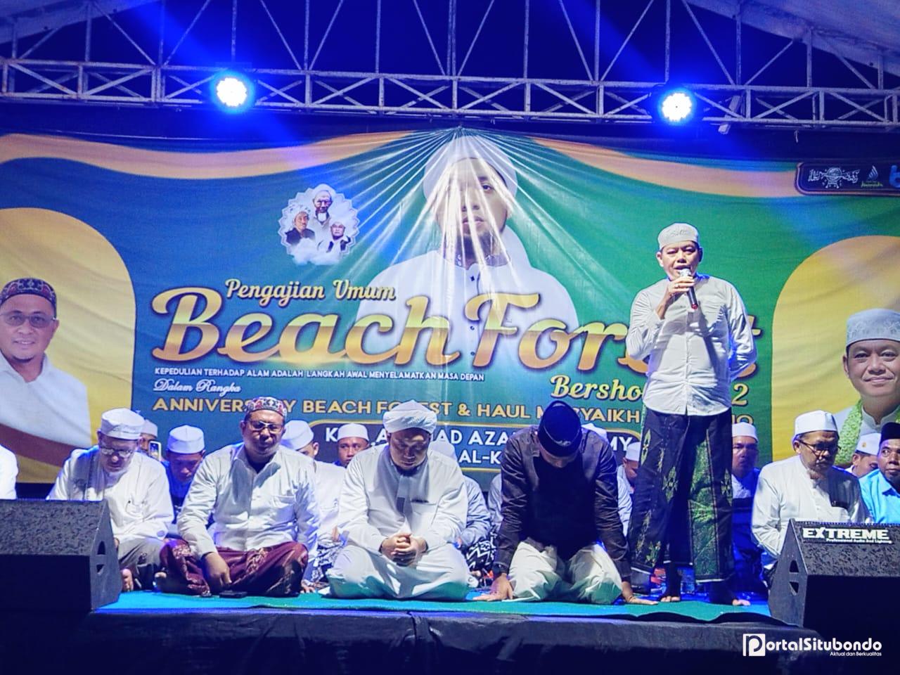 SITUBONDO, Portalsitubondo.com — Ribuan jamaah memadati kawasan Wisata Alam Beach Forest, Situbondo, Jawa Timur,, dalam kegiatan Pengajian Umum Beach Forest Bersholawat 2 dan Doa Bersama. Acara ini digelar untuk mengawali Tahun 2026 sekaligus memperingati anniversary Beach Forest dan Haul Masyaikh Sukorejo.Kamis (1/1/2026).