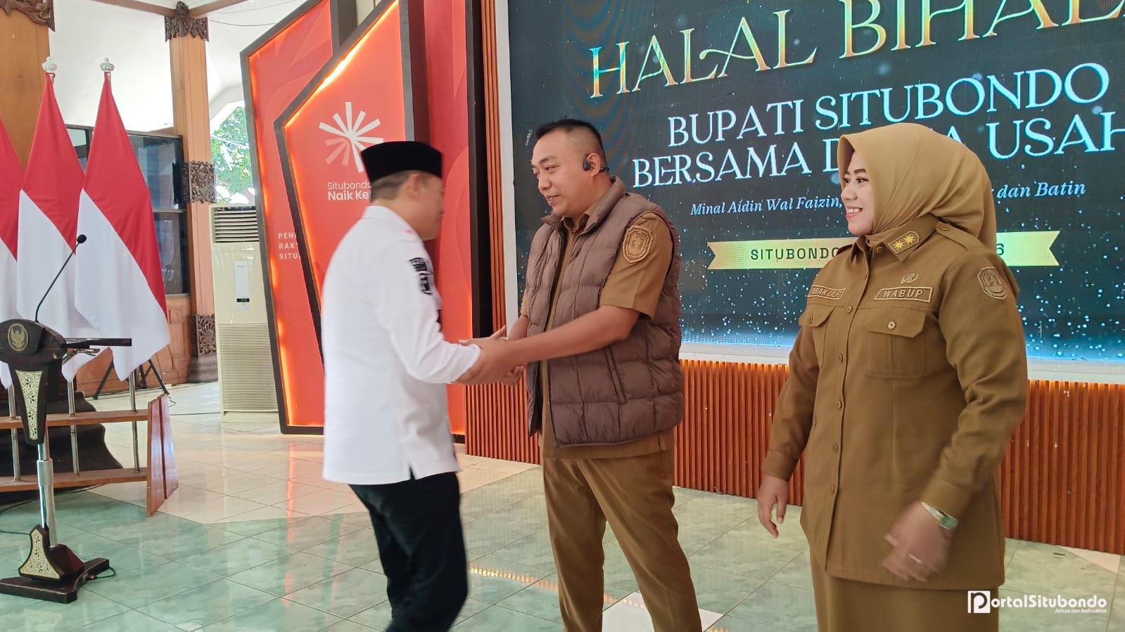 Portalsitubondo.com Senin , 30 Maret 2026 – Pemerintah Kabupaten Situbondo menggelar kegiatan Halal Bi Halal bersama para pelaku dunia usaha termasuk pula Badan Usaha Milik Negara (BUMN) di Pendopo Kabupaten Situbondo dalam suasana yang berlangsung meriah, hangat, dan penuh kebersamaan. Kegiatan ini tidak hanya menjadi ajang silaturahmi pasca Hari Raya, tetapi juga mempertegas komitmen bersama dalam memperkuat sinergi pembangunan daerah.