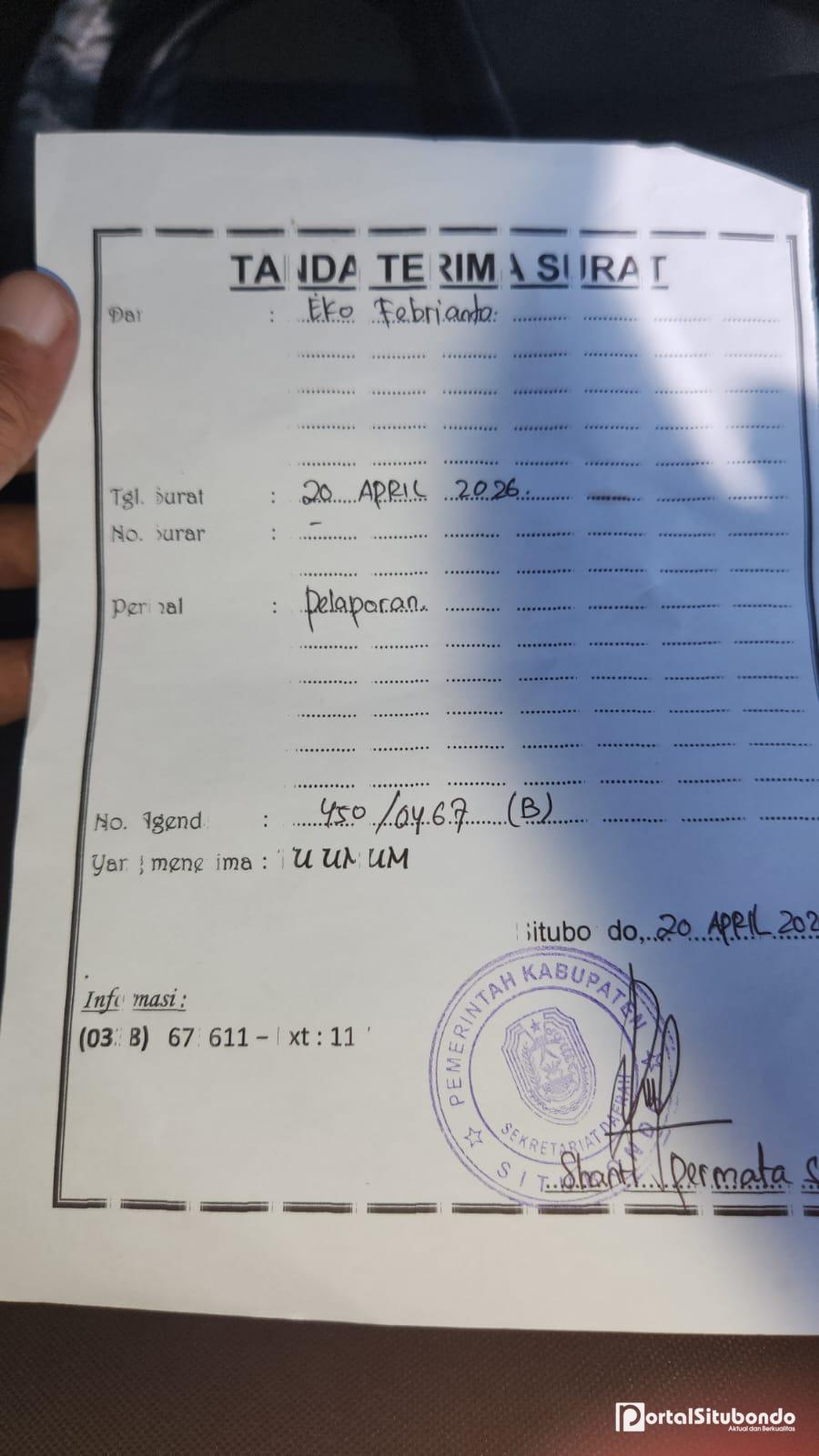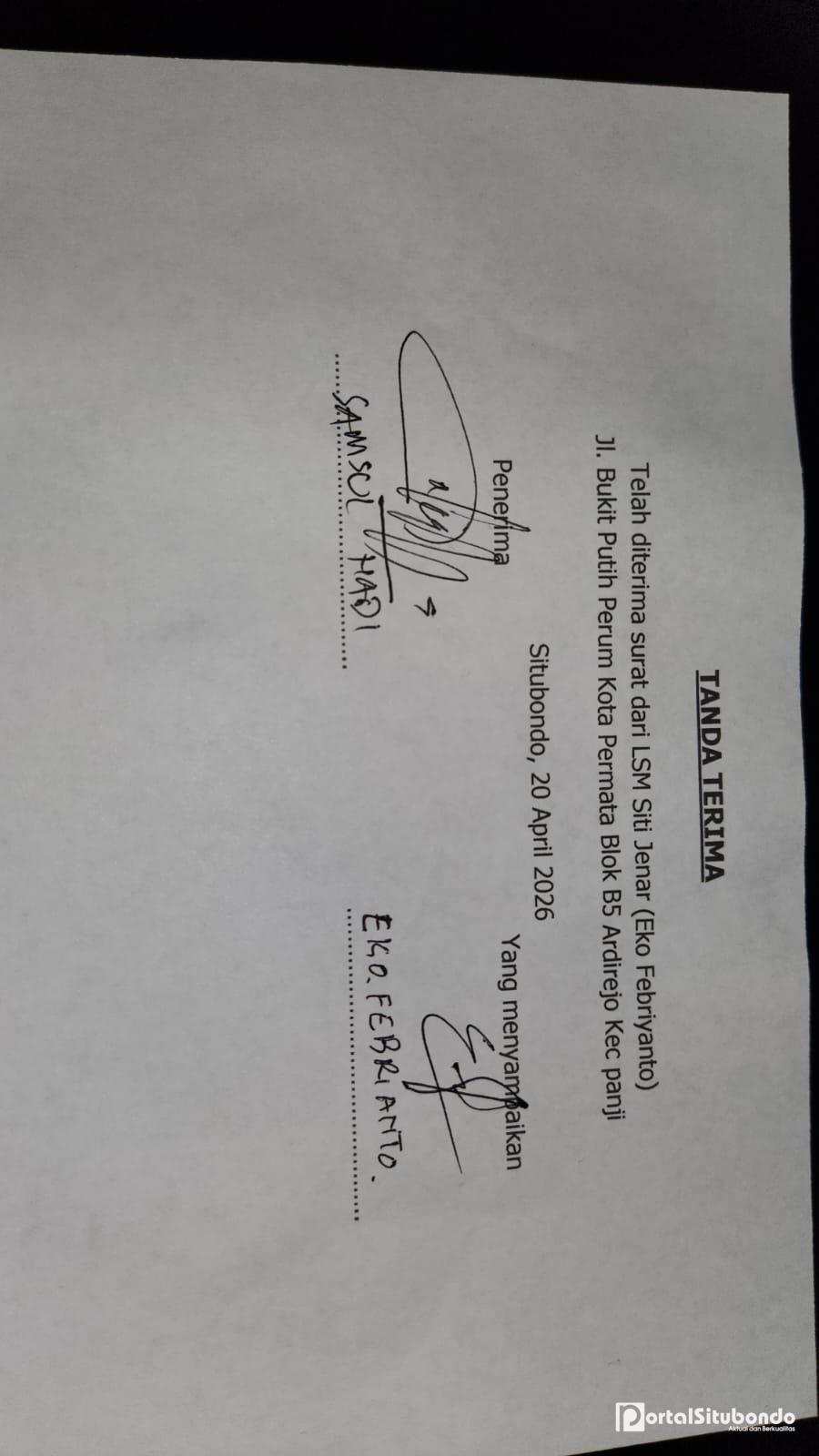 Keterangan Fhoto: Surat Tembusan kepada Bupati Situbondo yang juga resmi dilayangkan pagi ini Senin 20 April 2026 pukul 08:00 Wib.