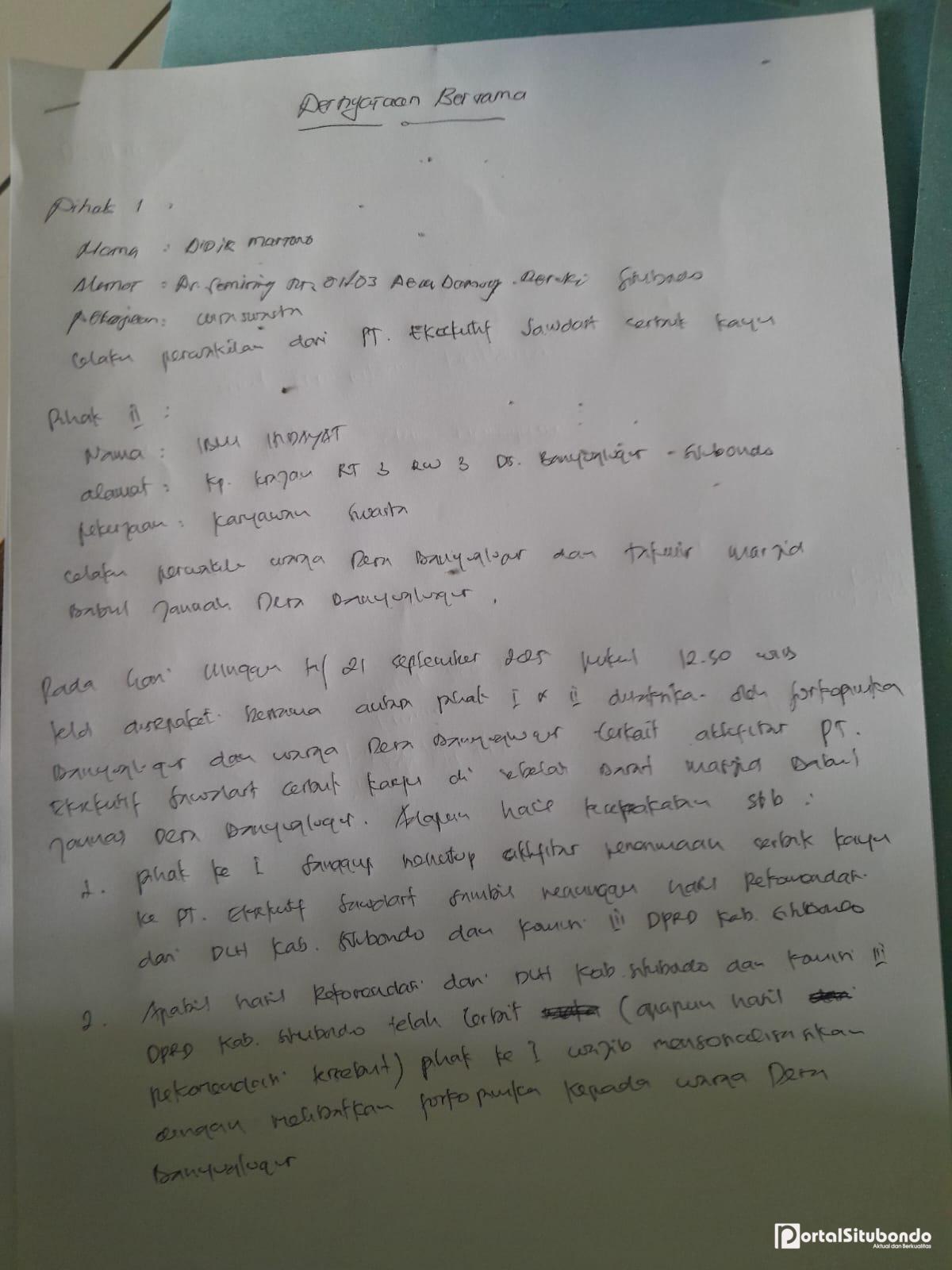 1. Perusahaan bersedia menghentikan aktivitas stockpile dan mengosongkan timbunan sambil menunggu rekomendasi DLH Situbondo.