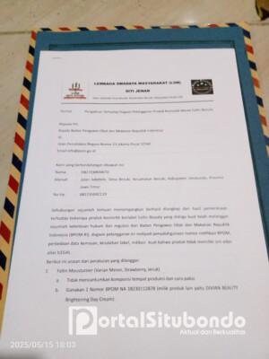 Portalsitubondo.com Kamis 15 Mei 2025: Situbondo – Dugaan pelanggaran serius terhadap peraturan peredaran kosmetik kembali mencuat ke permukaan. Kali ini, merek Fallin Beauty menjadi sorotan setelah LSM Siti Jenar Situbondo mengungkap sejumlah produk dari merek tersebut diduga tidak memenuhi standar legal dan etik sesuai regulasi Badan Pengawas Obat dan Makanan Republik Indonesia (BPOM RI).