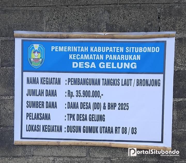 SITUBONDO,PortalSitubondo.com – Sebuah video yang memperlihatkan pembangunan tangkis laut atau bronjong di Desa Gelung, Kecamatan Panarukan, Kabupaten Situbondo, mendadak beredar di media sosial. Sorotan dalam video itu mengarah pada papan informasi proyek yang tertulis anggaran “Rp0” serta narasi penggunaan batu bekas, yang memicu pertanyaan dan kecurigaan sebagian warganet.